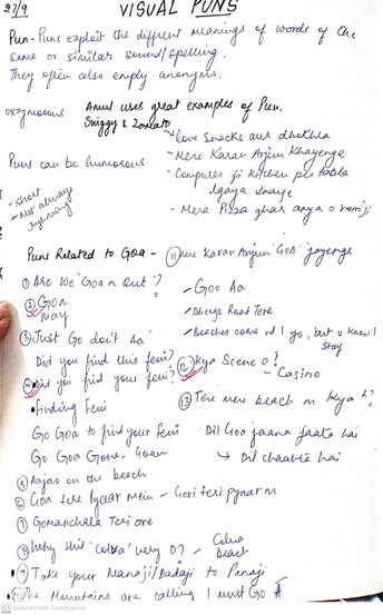 It was fun creating our own puns according to our city, it helped me research more about my city in terms of its language, food, movies shot their etc. For example the movie finding fanny was shot in Goa and Feni is a famous Goan drink, so the pun "Did you find your Feni?" makes a lot of sense yet it is not too obvious.